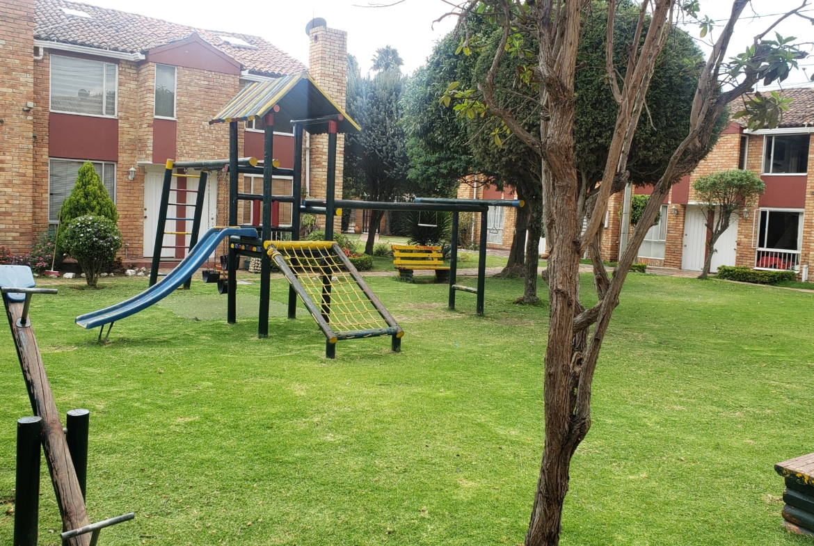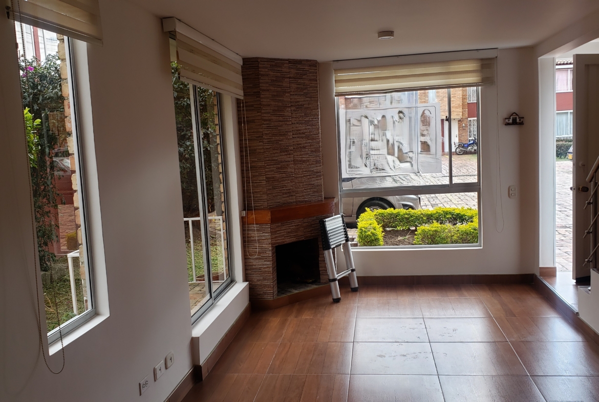 En conjunto cerrado, muy buena ubicación, dos pisos, en el segundo piso tres alcobas con closet, principal con baño, hall de alcobas, baño de alcobas, primer piso sala comedor con chimenea y balcón, estudio, cocina integral, baño social, patio de ropas cubierto, parqueadero, conjunto con zonas vedes, parque infantil. Facilidad de transporte público. CV 2014
